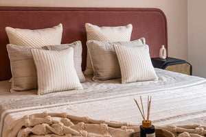 Introducing the Austin Bedcover, the perfect blend of style and comfort for your bedroom. Crafted from luxurious cotton linen fabric, this bedcover features elegant stripe quilting patterns that add a touch of sophistication to any decor. This option promises not only to elevate the aesthetic of your space but also to provide unparalleled coziness.