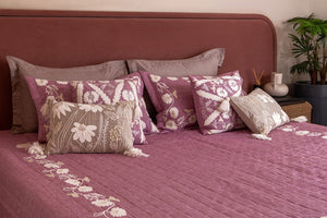 This elegant bedcover features a sophisticated grid-like quilting pattern that adds texture and depth to its design. Available in two refreshing colors - soothing mauve and crisp mint green. The standout feature of Bailey is its delicate white floral embroidery. These intricate flowers add a touch of romance and refinement to the bedcover, creating a beautiful contrast against the colored background.