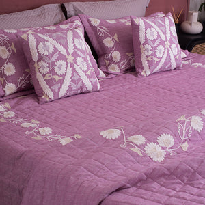 Size: Suitable for King and Queen Beds | Pattern: Quilted and Embroidered | Fabric: Linen