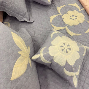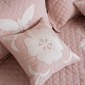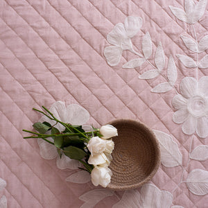 Discover Clementine, our exquisite linen quilted bedcover. Showcasing masterful threadwork, its delicate floral motifs dance across a crisp linen canvas. This artisanal piece marries timeless craftsmanship with contemporary style, offering a tactile and visual feast that transforms your bedroom into a haven of refined comfort.