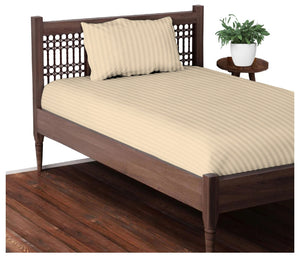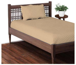 The Lorenzo satin stripe fitted bedsheet, with a 210 thread count, offers a luxurious blend of comfort, durability, and elegance. Made from premium cotton, it features a subtle satin stripe design that adds sophistication to any bedroom. The fitted design ensures a secure, wrinkle-free fit on the mattress, while the fine weave enhances breathability and softness. Lightweight yet strong, it is easy to maintain, resistant to wear, and retains its smooth texture after multiple washes, providing a premium sleep experience.