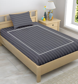 Manhattan Supima Cotton Duvet Cover -300 TC Satin Stripe- Slate Grey