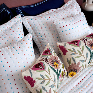 The Pauline Quilted Bedcover brings a touch of playful charm and youthful energy to your bedroom. Featuring delightful pastel-colored polka dots on luxurious ivory linen, its vibrant design and soft, cozy material make it an ideal choice for those seeking a blend of style and comfort.
