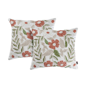 Bring a touch of nature indoors with our elegant Tiffany cushion covers. Featuring delicate embroidery of coral flowers and green ferns on a soothing blue background, these covers add a fresh, botanical charm to any space. Perfect for enhancing sofas, beds, or accent chairs.